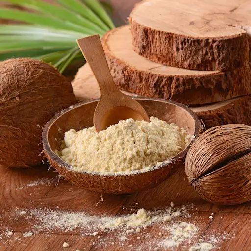 在纤维和碳水化合物中含量高,这种面粉通常用于烘焙商品,由于其甜椰子味。
