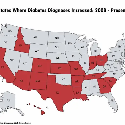 糖尿病发病率增加的州